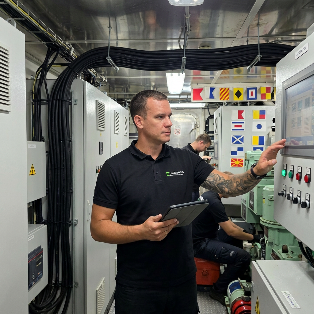 Teostame elektritöid erinevat tüüpi laevadel üle maailma. Pakume paigaldust, hooldust ja